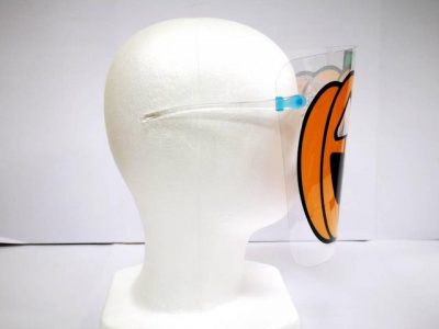 従来のオリジナルフェイスシールドに加え、眼鏡タイプのフェイスシールドの取り扱いを開始しました。眼鏡フレームであるためかけ外しが容易で、シールド部分は交換ができ、用途に応じでデザインの切り替えが可能です。